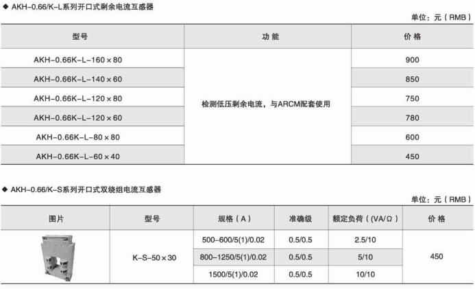 具體型號(hào):AKH-0.66/K K-80*50 800AKH-0.66/K開口式電流互感器
