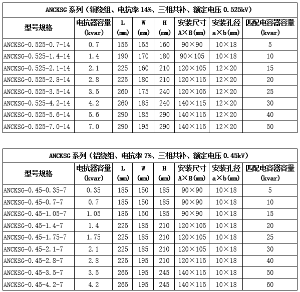 ANCK系列串聯電抗器與ANBSMJ系列自愈式低壓并聯電容器配套使用,主要用于提高0.4kV電力系統的功率因數,有效抑制電網的高次諧波,減輕電容器由諧波引起的過載,防止諧波放大,對電容器的安全運行,改善網絡電壓波形,提高供電質量和電網安全經濟運行起良好作用。應用范圍: