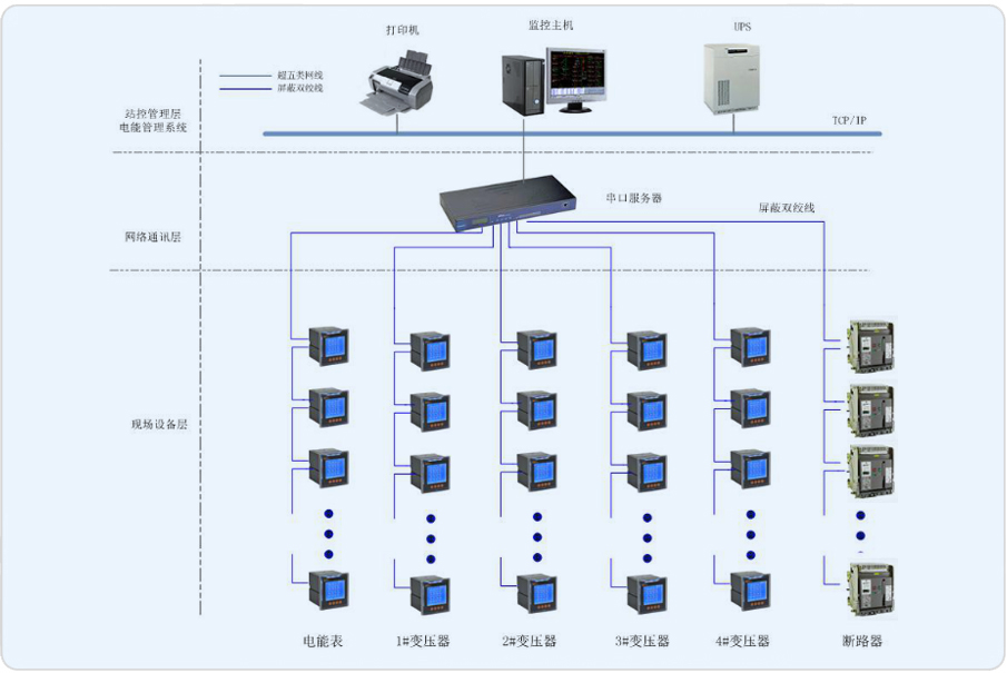 安科瑞電氣股份有限公司于2014年承接該項(xiàng)目電力監(jiān)控系統(tǒng),系統(tǒng)通過多功能的電力監(jiān)控裝置、通訊網(wǎng)絡(luò)和計(jì)算機(jī)軟件,實(shí)現(xiàn)工廠內(nèi)供配電系統(tǒng)在運(yùn)行過程中的數(shù)據(jù)采集、運(yùn)行監(jiān)視、事故預(yù)警、事故記錄和分析、電能質(zhì)量檢測、三相不平衡監(jiān)視、繼電保護(hù)等,完成工廠的安全供電、用電管理、設(shè)備管理和運(yùn)行管理。系統(tǒng)由主控層、通訊管理層和現(xiàn)場控制層構(gòu)成。系統(tǒng)要求盡量減少集中采集數(shù)據(jù)的裝置以保證系統(tǒng)的通訊可靠性。本次項(xiàng)目主要涉及當(dāng)陽市蒙牛乳業(yè)有限責(zé)任公司配電室內(nèi)的網(wǎng)絡(luò)多功能儀表、電能表以及斷路器,53個回路需要監(jiān)測,監(jiān)控主機(jī)位于配電室。