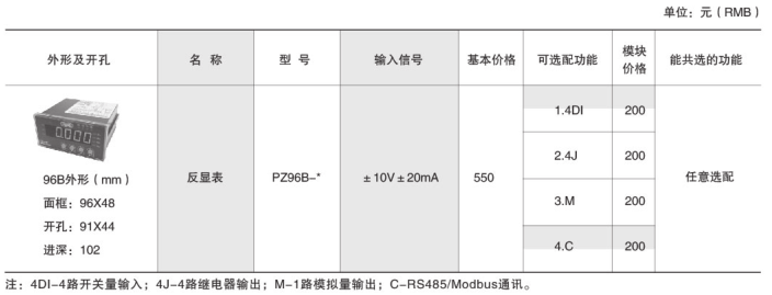 該系列儀表可測量直流電流、直流電壓、各種類型熱電偶、熱電阻、電阻傳感器,帶DC24V電源輸出可給外部兩線式變壓器直接供電。儀表帶有多種可選功能:RS485接口、模擬量輸出、開關量輸入、繼電器報警輸出等。